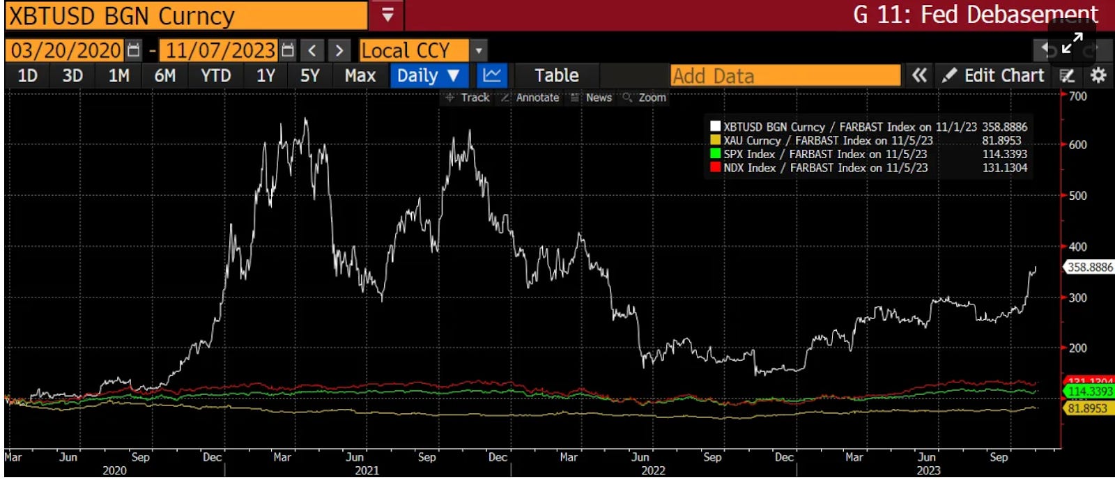 Hayes does think in either way (oil prices up or down relative to USD), we will end up with happy citizens – if down, people think inflation is quelled. If up, its because the US gov will end up printing $ more and everyone’s portfolios will be mooning