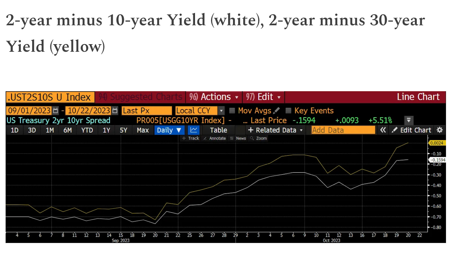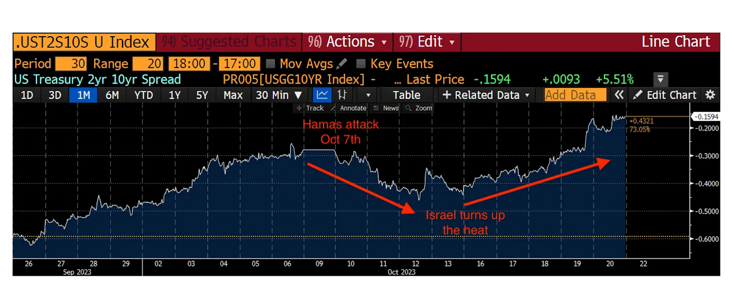 Arthur shares his view (original article) on the bear steepener and the Hamas terrorist attacks – specifically on how these will impact markets. I break down his essay into a summary of 4 parts: