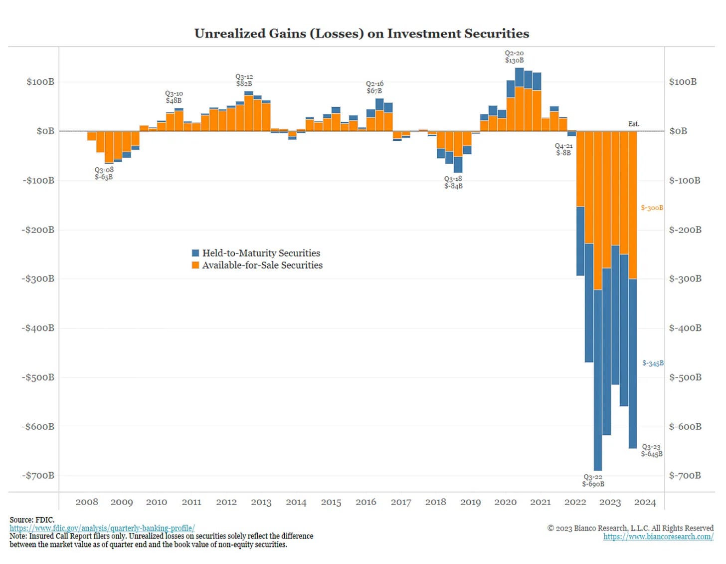 In addition to this, the US banking system suffered a crisis back in Mar ‘23. This issue still exists and we can see that US banking system has another 700B in unrealized losses on US treasuries